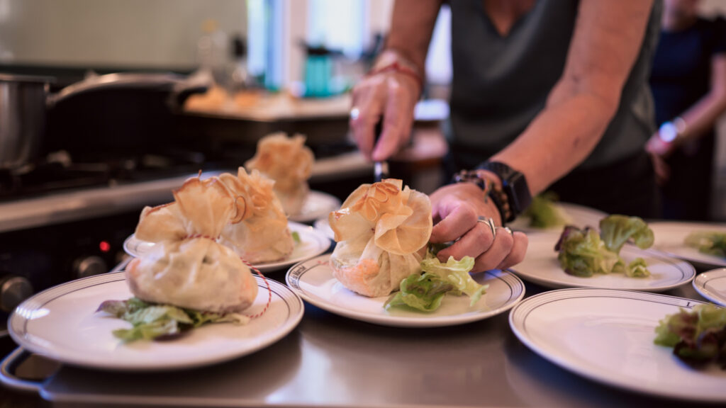 Dès mon arrivée, j’ai été accueillie très chaleureusement par Sonya et Tony. Nous avons fait le tour de la propriété, puis Sonya m’a montré la table qu’elle avait dressée à l’intérieur. Elle avait réalisé toute la décoration elle-même, avec beaucoup de goût. J’ai pris beaucoup de plaisir à photographier ces détails de décoration et d’art de la table, qui racontent à eux seuls l’ambiance de la soirée.